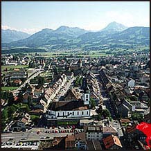 Disentis GR, Dorfplatz, in der Nähe der Kirche